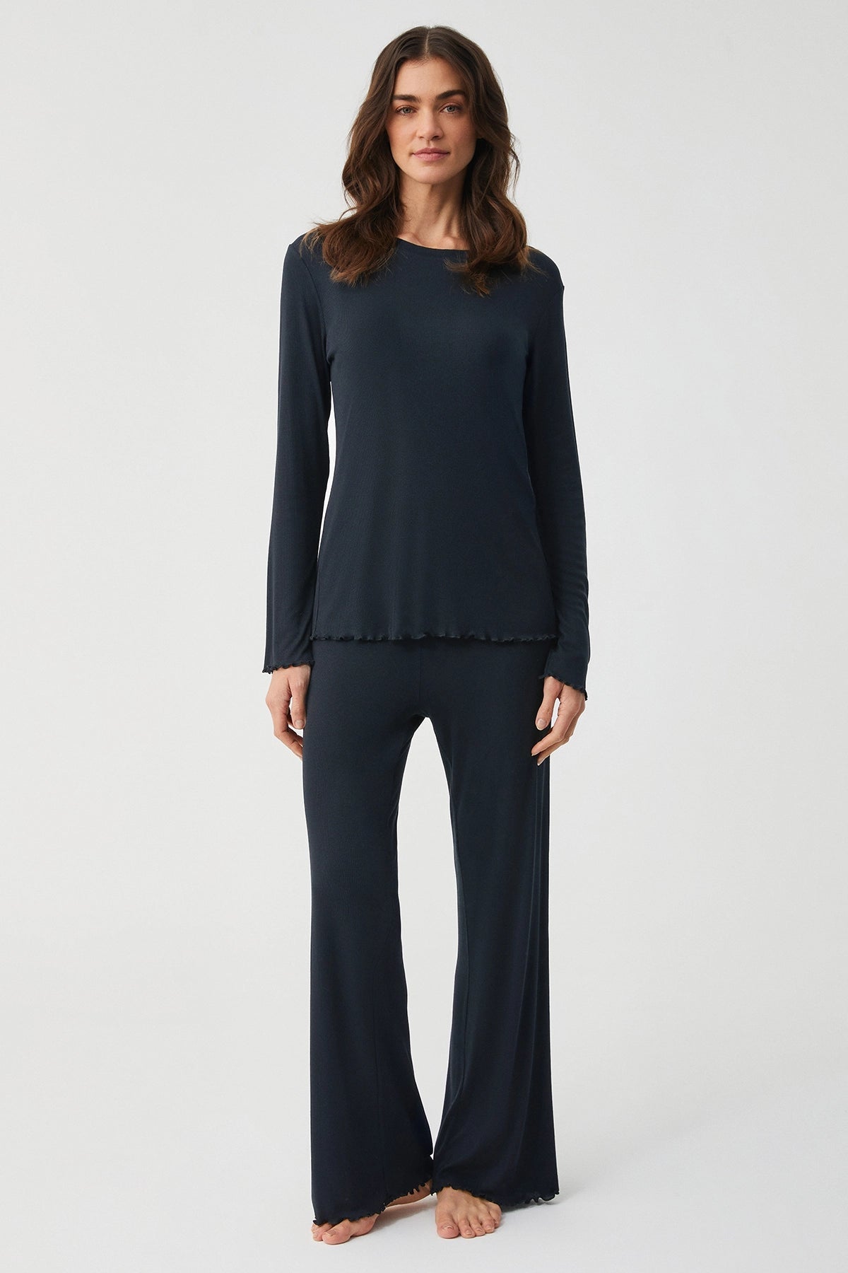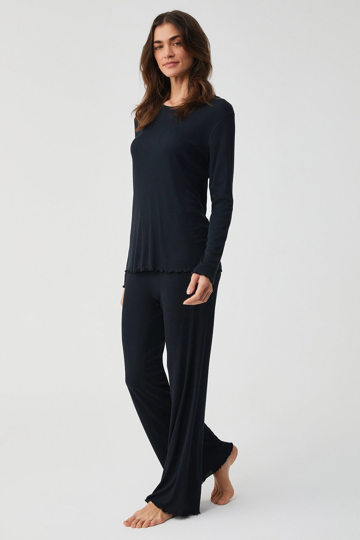 Yumuşak Dokulu Siyah Uzun Kollu Pijama Takımı